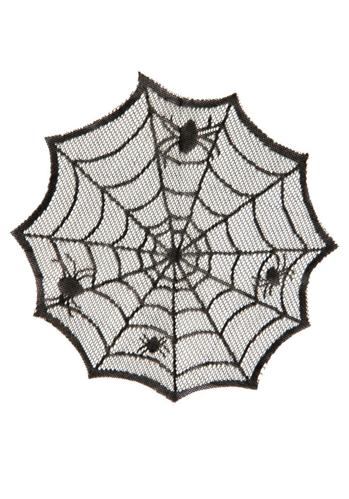 Weave a web of Halloween flair with this exclusive Black Spider Web Placemat Table Decoration! Made of black polyester machine lace, the mat is shaped like a spiderweb and measures approximately twelve inches in diameter. It’s knitted with web details as well as creepy-crawly black spiders. Unlike a real spiderweb, it isn’t sticky, which means that you can use it year after year. Webbed and Wonderful A placemat this detailed adds a special touch of spookiness to your other home decorations. It’s just right for placing beneath a faux pumpkin, a candy bowl full of wrapped treats, or a vintage-looking candelabra. You could also get several to put underneath your serving dishes. Your guests will be relieved to learn that they aren’t the main course.