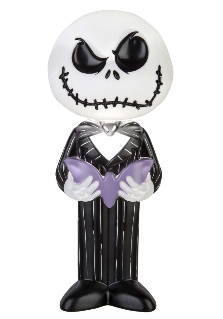 Standing 14 inches tall, this officially licensed blow mold decoration features Jack Skellington in his signature striped suit with a stylized design that captures his mischievous charm. He holds a molded purple bat with both hands, giving the piece a fun twist while keeping things unmistakably Halloween Town-approved.Made with a smooth, glossy finish and lightweight design, this figure is easy to position on tabletops, mantels, shelves, or wherever your haunted heart desires. It’s sized just right for display, without taking up your entire spooky spread.A Frightfully Festive Favorite.
