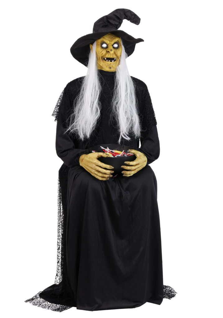 3.5FT Animatronic Seated Witch Holding Candy Bowl Decoration | Witch Decorations