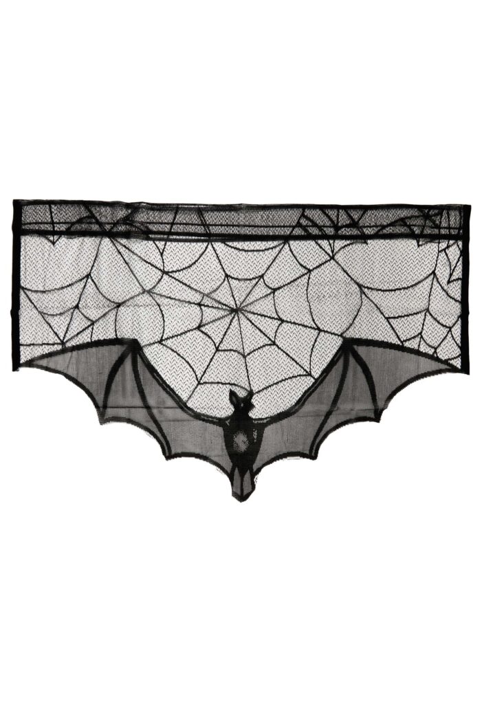 It’s not batty to want your home to look perfect for Halloween, so set out this exclusive Flying Bat Mantel Scarf Halloween Decoration! Made of polyester machine lace, the long scarf can be threaded onto a curtain rod if desired or spread over a flat surface. It features a large, knitted-in bat with outspread wings against a background of spiderwebs. Fly by Night Your home’s decoration game will soar thanks to this unique mantel scarf! Slightly Gothic yet always classic, the bat and spider motifs will pair perfectly with your other Halloween-themed favorites. Even the most timid among your guests will have to admire your style.