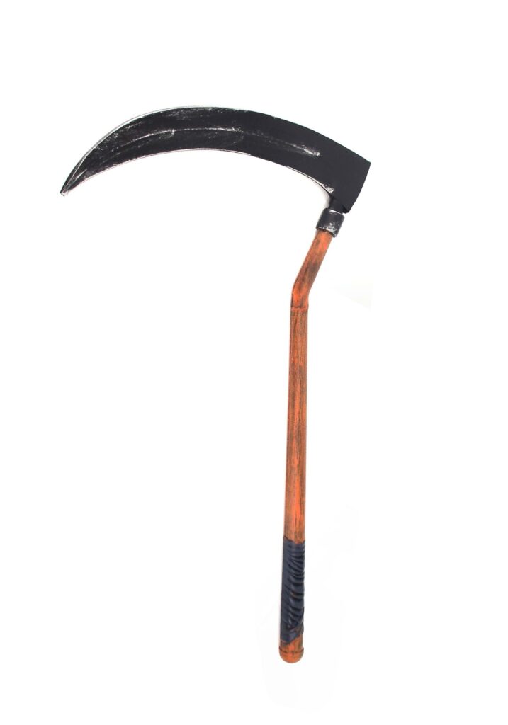 Product DetailsThis faux weapon features a dramatically curved black blade that looks freshly dragged from a haunted wheat field (because even grim reapers have seasonal side gigs). The wooden-look handle, complete with grip detailing, gives rustic “back-from-the-dead” vibes. It even disassembles into two pieces for easy transport, perfect for storing in a coffin, closet, or crypt between haunts.Made from lightweight plastic, it’s easy to wield whether you’re 6 feet tall or just trying to look the part. Just twist the handle pieces together and you’re ready to inspire screams (or compliments) all night long.Scythe-ly Does ItWhen you need a prop that screams “eternal rest, but make it fashion,” this Reaper Scythe is your go-to. It’s creepy, it’s classic, and it goes with literally every shade of black.