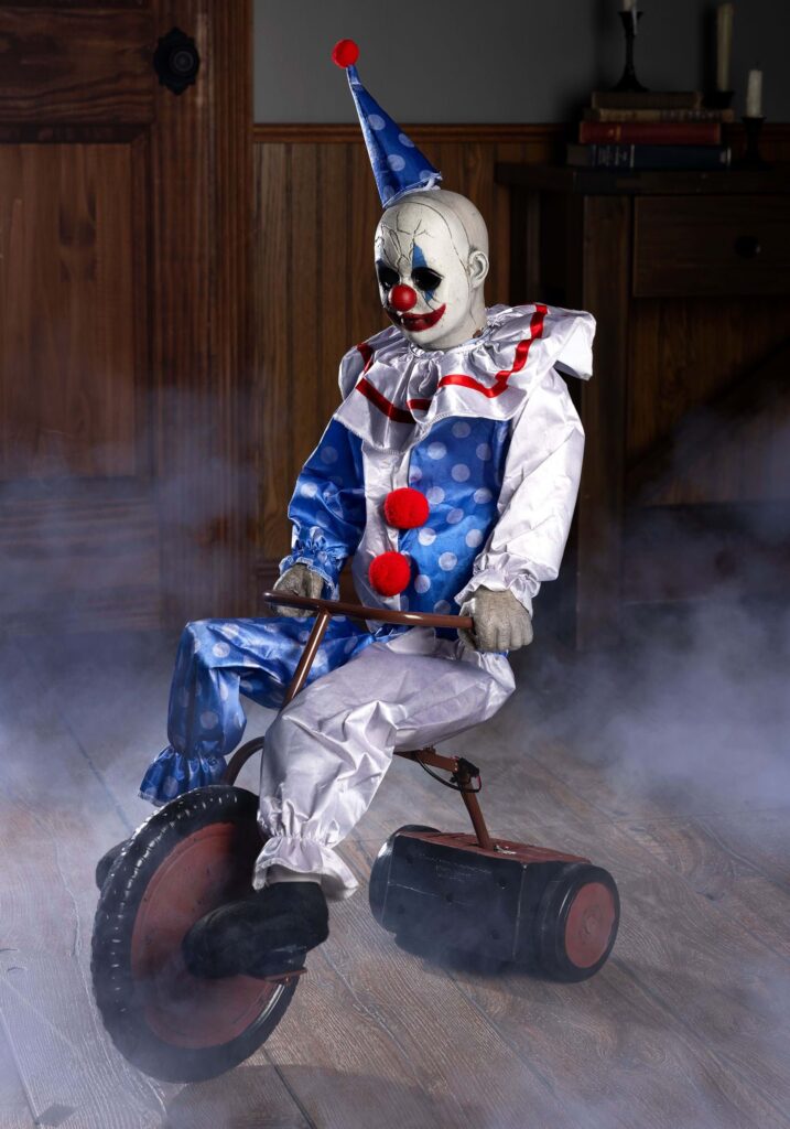 The Wheels on the Clown Go…Nope, Nope, Nope! You know what’s worse than a creepy clown? A creepy clown that can move. Meet the Tricycle Doll Clown Animatronic, proof that sometimes tiny things are way scarier than big ones. With glowing blue eyes and an unnerving little trike, this pint-sized terror pedals forward and backward like he’s late for a haunted circus performance and you might need a ride to get there in time!