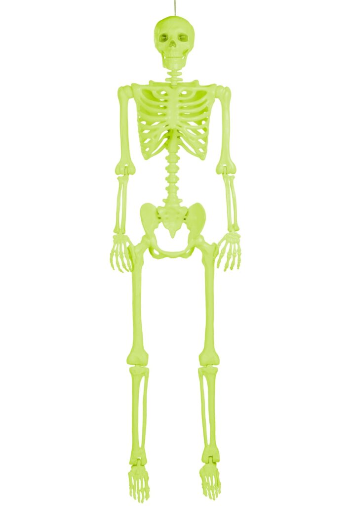 Glowing and Groaning Since 1684Looking for a skeleton with a little more… zest? The 5FT Poseable Crazy Bones Neon Green Skeleton Decoration is here to light up your space and your life, one unblinking stare at a time. This isn’t some dusty old bag of bones. This guy’s electric, dramatic, and deeply committed to hanging around wherever you need him, literally. From doorways to ceilings to suspicious corners of the room, he’s got serious staying power (as long as gravity’s on your side).