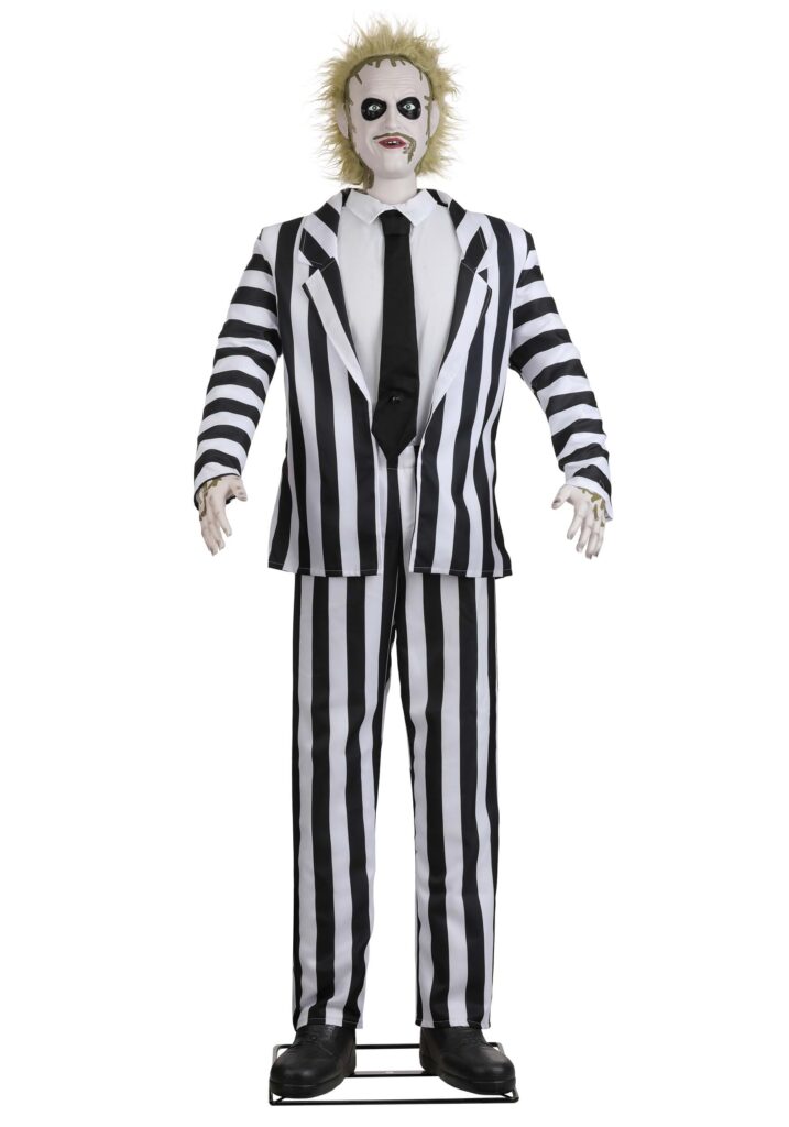 At 6.4 feet tall, this Beetlejuice animatronic is set to turn your yard into a full-on haunting. Whether he’s cracking jokes or just standing there looking ghastly, he’s the perfect mix of creepy and comedy. Add him to your Halloween decor setup and turn your home into a scene from the Tim Burton classic, just remember, if things get too weird, you were the one who summoned him here this time!
