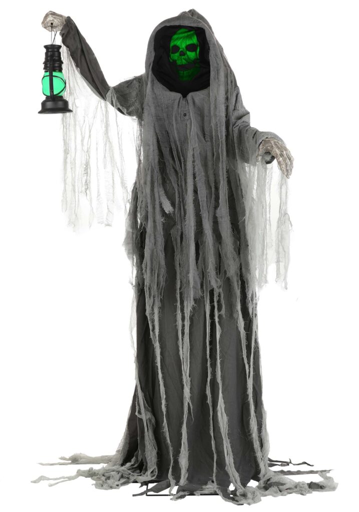 Welcome…to Your Doom!  Is being greeted by a shrouded phantom ever good news? Usually they signal death and destruction and general unpleasantness, but this guy is different. He’s just signalling that there’s about to be a killer party in the neighborhood.This Animated Looming Phantom Decoration is our design team’s latest attempt to craft the creepiest animatronics around. We can guarantee that it will make more than a few trick-or-treaters feel a spine-tingling chill when they catch sight of it!