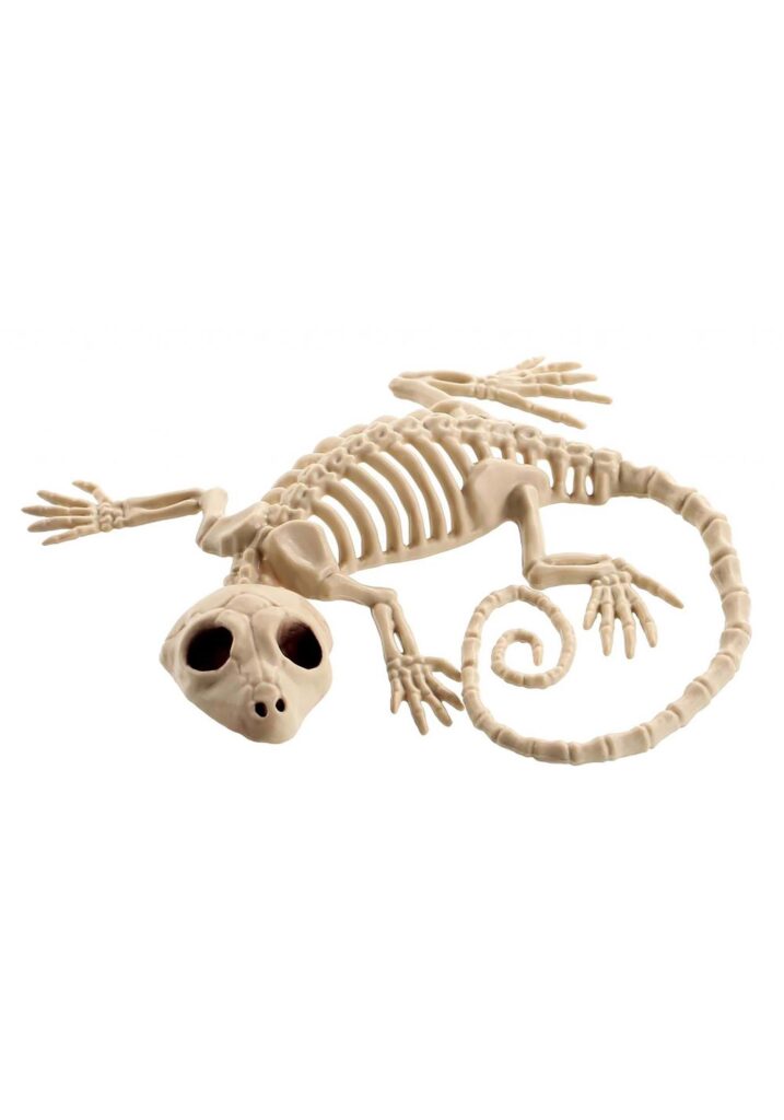 The 7-inch Gecko skeleton prop is a realistic decoration that can be placed in a glass aquarium to fool all your friends. It’s created from molded plastic and does not have any moving parts, it’s merely stationary even though it appears like it can crawl across the floor at any moment! WANT TO MEET ALL OUR DEAD PETS? We have many dead pets, not because we’re awful pet owners but because we’re a costume company so we love spooky decor. Accent this one-of-a-kind prop with our other animal carcasses, like the skeleton frog, dog, kitty, and spider.