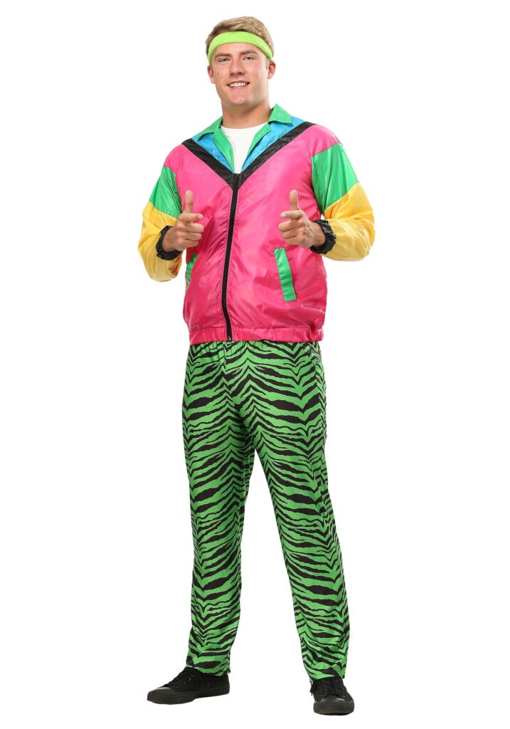 This exclusive costume features a jacket-pants-headband combo only possible in the 80s. The jacket zips and sports a gnarly neon color block pattern. Meanwhile, the pants are…memorable! They are green tiger striped (naturally) and have an elastic waistband, in case you need to get into a breakdance competition without warning. Somehow, the whole thing just works together. The terry cloth headband tops off your hair (hopefully a mullet) and makes you feel like a boss. Now, grab a real boombox and crank up some jams, or snag one of our inflatable models (they’re a lot lighter to carry on your shoulder all night, and you can blast the music from your phone! ), because tonight is gonna be bomb diggity! Time to Bounce.
