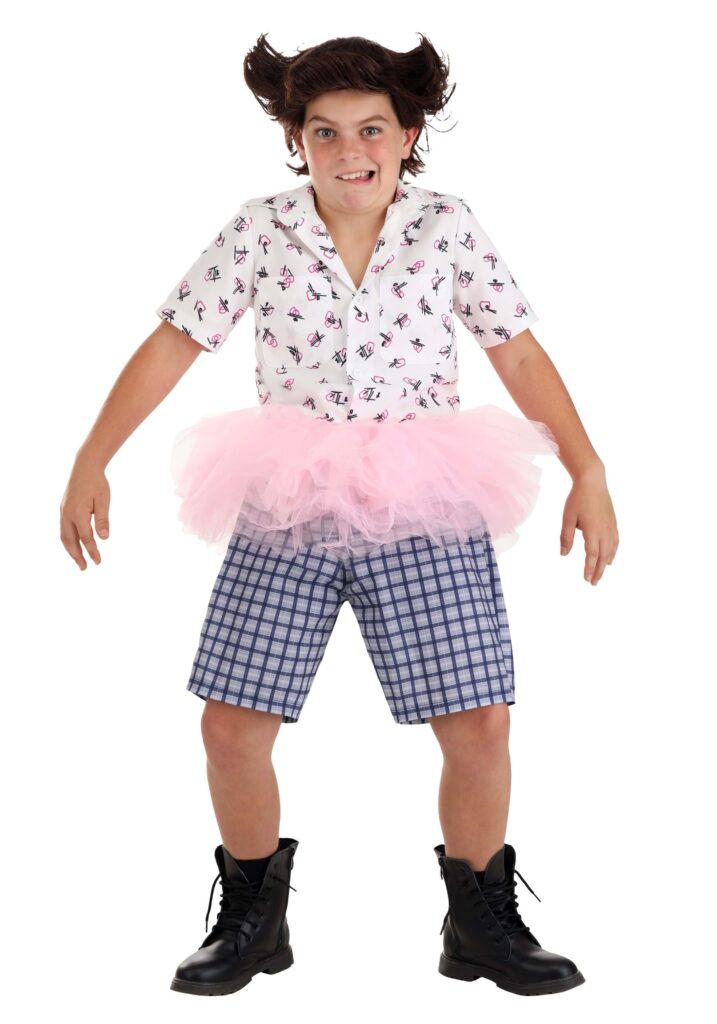 Mini-Ace on the CaseYour kiddo is about to become the most over-the-top pet detective in this Ace Ventura Tutu Costume! This look is all about channeling that chaotic, gotta-solve-the-case energy with a side of hilarious ’90s flair. Between the wild hair, the loud shirt, and the pink tutu, your kid will be ready to bust out some serious moves while solving the mystery of who took the last piece of Halloween candy. Spoiler alert: it was probably the dog, but your mini-Ace is definitely on the case.This costume is all about bringing the laughs. It’s perfect for the kid who’s always cracking jokes, pulling pranks, and generally keeping things weird in the best way possible. Just make sure you’re ready for all the animal impressions and Ace quotes they’ll be throwing out all night. You might not be a pet detective, but you’ll definitely be investigating how your kid got this funny!