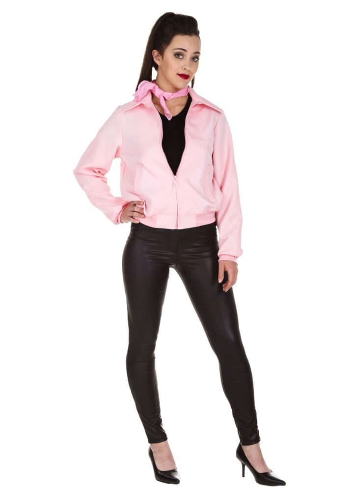 All you really need to become a Pink Lady is attitude! Well, that and this officially licensed Pink Ladies Jacket licensed.This Adult Deluxe Pink Ladies Jacket brings you the look made popular by Rizzo, Frenchy and Sandy in the hit movie, Grease. The jacket is made of a polyester satin that silky smooth. It has a zip-up style front and it comes with “Pink Ladies” printed in the back. The matching pink scarf fits around your neck to top it all off. Put it all on and you can be the newest member of Rydell High’s coolest all-girls crew.