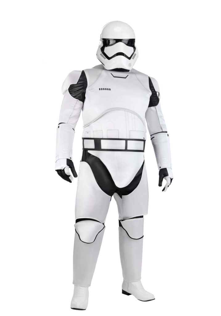 Design & DetailsThis high-quality jumpsuit is made from shiny jersey fabric and printed throughout with detailed graphics to match the official First Order Stormtrooper look. It zips up the back for a snug and secure fit, ensuring you stay sharp no matter the scene. The matching gloves and hood have elastic at the wrists and back of the head, keeping everything in place as you prepare for intergalactic domination.Strategically placed foam-backed armor pieces cover the shoulders, chest, arms, and legs, giving you that signature Stormtrooper silhouette without sacrificing movement. The sublimated design ensures a polished, armor-like shine, so you’ll look ready for battle without the hassle of clunky, restrictive plating.And of course, no Stormtrooper is complete without a helmet. This costume includes a pressed foam mask that blends smoothly with the hood, featuring shaded transparent lenses and a hidden strap for a seamless look.Galactic Go-GetterWhether you’re enforcing the First Order’s will, marching with fellow troopers, or just showing off your Star Wars devotion, this Deluxe Stormtrooper Costume has everything you need to feel like a galaxy far, far away is right here!© & „¢ Lucasfilm Ltd.