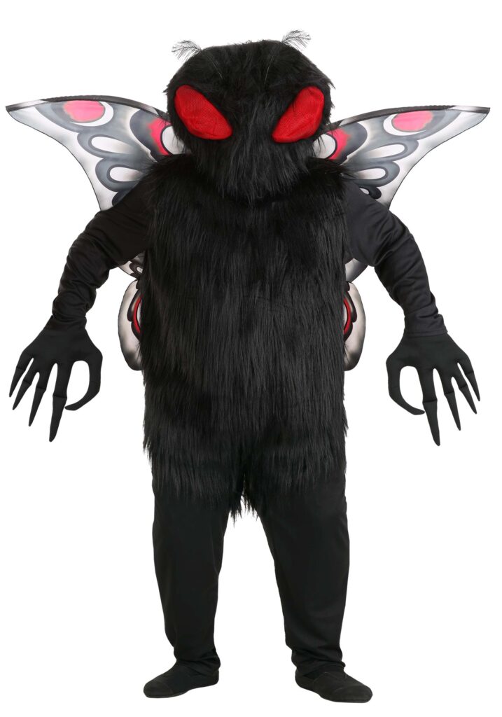 This full-body jumpsuit features a faux fur torso that’s soft enough to hug and suspicious enough to avoid in a foggy cornfield. The poly knit sleeves and legs keep it comfy and breathable, and the zipper down the center back makes suiting up surprisingly easy for a creature of legend.The pullover headpiece is fully covered in faux fur and fastens with a hook and loop strip at the back of the neck. Red mesh eye panels give that signature glowing stare, while still allowing you to see (mostly). The included gloves have oversized, fiber-filled fingers for that extra bit of paranormal flair.And then there are the wings. Made of durable nylon with plastic supports, they attach to the back with hook and loop fasteners and felt tabs so they stand out and stay in place. Spread them wide and vanish into the shadows, or just awkwardly shuffle through a doorway. Both work.Local Legend, Larger Than LifeWhether you’re prowling for Halloween candy or just showing up to the cryptid convention in peak form, this costume delivers full Mothman realness. It’s eerie. It’s over-the-top. And it might even convince a few people they saw something they can’t quite explain.
