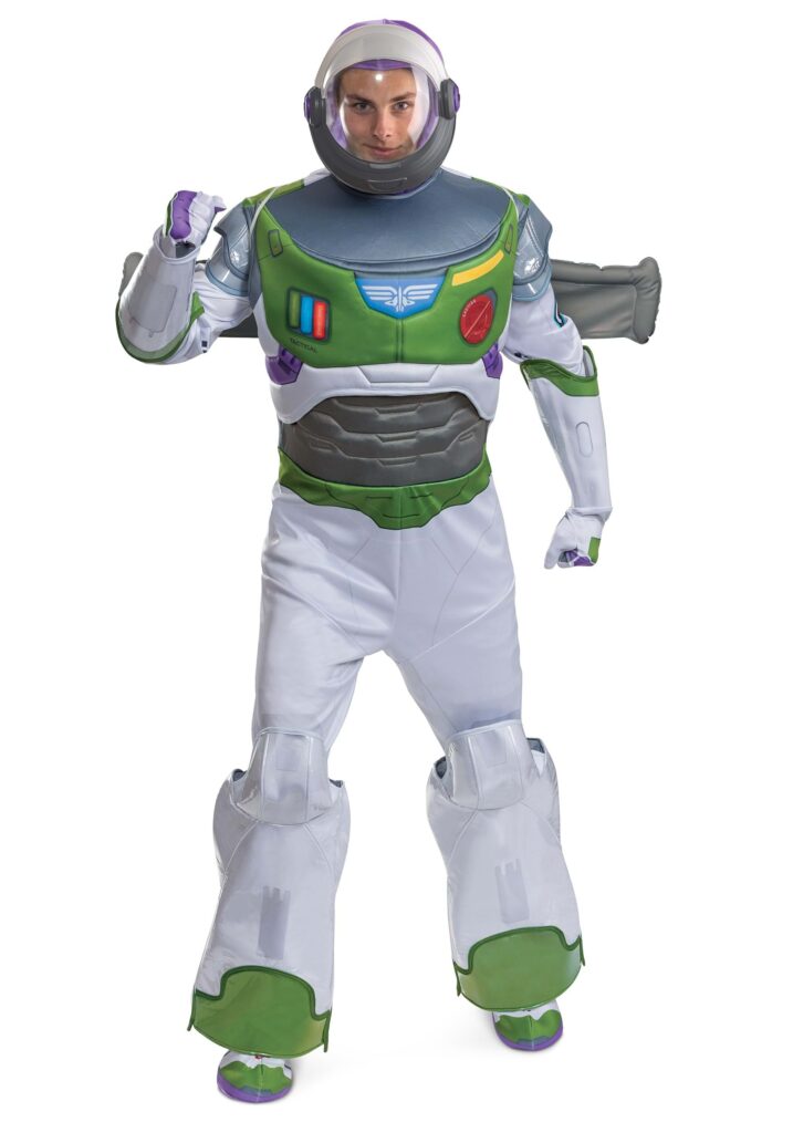 Product DetailsReady for some new space adventures? Then it’s time to suit up in this Premium Buzz Lightyear Costume! The costume is officially licensed from the Disney-Pixar film, Lightyear. The main piece is a white astronaut jumpsuit, which features plenty of details inspired by the suit seen in the movie. The waist has a printed green belt, and textured gray “armor” above. The chest armor has printed lights, a cap, and more.The costume also has foam-backed faux leather gauntlets and boot covers, which should fit over most pairs of shoes. That means you can wear your favorite pair of kicks with the outfit. The mask is shaped like Buzz’s signature helmet from the movie, so once you have it on, you’ll be ready to explore infinity… and beyond!The Premium Buzz Lightyear CostumeWhether you’ve been a fan of Buzz since the first Toy Story hit theaters in 1995, or you’re a new recruit looking to make a name for yourself in Star Command, this Lightyear costume is an easy choice. It’s the deluxe version of the costume, which means it comes with extra details that the standard versions don’t have. Also, be sure to check out our other Lightyear costumes to help you assemble your own team of Space Rangers!