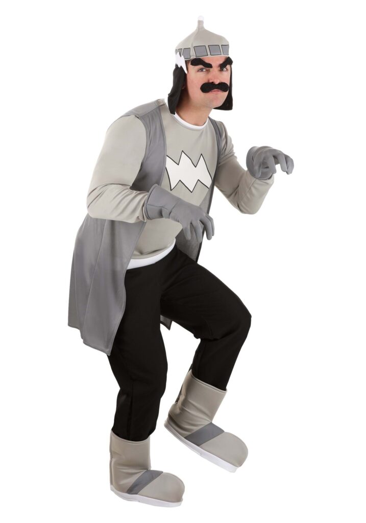 Our designers watched tons of episodes of Rainbow Brite to get his cranky style just right! The costume starts with a grey shirt to match his completely colorless attitude! The front of the shirt has a white stormy symbol in the front. The matching grey cape fits around the shoulders to help you feel like going full villain-mode on Rainbow Land! (Rainbow Brite better watch out when you show up!)Of course, every great costume needs some good accessories, and this simple ensemble delivers! The included helmet is soft and comfortable, but is shaped like the character’s helmet from the original cartoon series. The gloves match the cape to help round out the look, and the finishing touch comes in the form of a pair of boot covers, which you can wear over any pair of shoes! Put it all together, and you have a dastardly look that comes straight from the 80s.Villainy: 80s StylePerfect for any 80s kid who spent their time watching Rainbow Brite (or plotting her demise), this Made By Us Costume will have you feeling some seriously villainous vibes! It’s an easy to wear costume that really takes the color out of any situation… but in a good way!