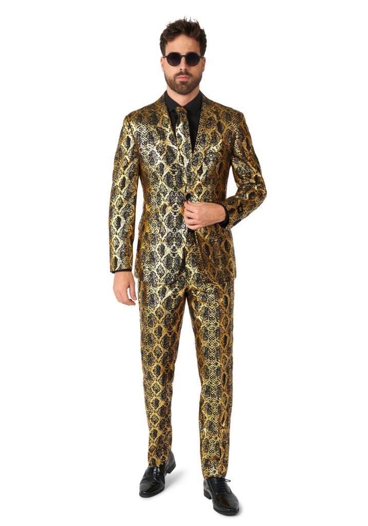 Who said suits have to be boring? We bet some old dude decided that suits could only be like 2 colors, and then other old guys made it into a fashion rule. Well, let’s break free form that! ]It’s time to level up your style game and make a statement with the Opposuits Shiny Snake Suit. Designed for stylish dudes who want to stand out at parties, this suit is the epitome of awesomeness. Say goodbye to the sea of black and gray suits and hello to a suit that’s as wild and untamed as your party spirit.Fun Details.