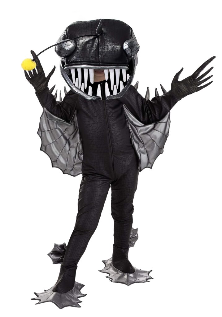 What kinds of terrifying creatures lurk in the dark? As much as our imaginations like to scare us with ideas of witches, zombies, or even skeletons skulking in the shadows, some very real dwellers of the dark are just as horrifying. For example, anglerfish live in the sea at a depth so great that even the sun’s rays don’t reach them, and they spend their days in unyielding darkness.If your little one wants to try out a scary costume this year, they might like our Toddler Angler Fish Costume! We think an outfit based on a creepy creature that actually exists gives it an additional layer of eerie. Fortunately, this one is only hungry for candy!