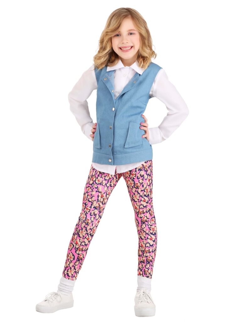 Lorean to see what awaits her. Of course, she looks like she could take on just about anything in that classic 80s outfit that she wears! Now, your little girl can get the same look when she wears this officially licensed costume.This Back to the Future Jennifer Parker Costume is inspired by the character from the hit movie series. It comes with a white shirt and a blue button-up vest. It also comes with a pair of floral print pants to recreate her iconic 1980s style from the film. She’ll be ready for a trip to 2015 in no time! Back to the Future is a trademark and copyright of Universal Studios and U-Drive Joint Venture. Licensed by Universal Studios Licensing. All Rights Reserved.