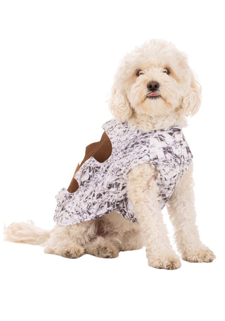 This costume is as simple as it is charming. There are openings on the bottom of this getup’s front side. Slide your pup’s front legs in those openings and secure the costume around the chest. The tin-foil side of the potato should be on the underside of your doggo while the delicious toppings should rest on its back. Your little furball will be as cozy as can be in this adorable ensemble!