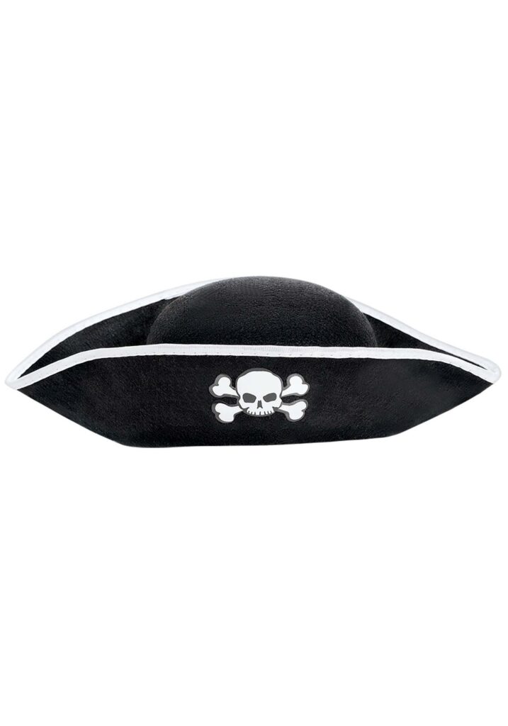A Really Jolly RogerSome pirates are all about the serious life—realistic weathered coats, historically accurate weaponry, extensive knowledge of maritime law. But what if your pirate aesthetic is more “fun-loving scallywag” than “grizzled sea bandit?” That’s where this Kid’s Black Pirate Costume Hat comes in! It’s bold, it’s playful, and it practically demands that you belt out a good “ARRR!” at least once while wearing it.Product DetailsThis tricorn-style pirate hat is all about embracing the swashbuckling spirit. It’s black with crisp white accents along the brim, giving it a sharp contrast that pops on any pirate outfit. Front and center, you’ll find the iconic skull and crossbones emblem—because what’s a pirate without their classic branding?Unlike the heavy, ultra-realistic hats that make you feel like you’ve been at sea for six months, this hat is lightweight and designed for fun. It’s perfect for pirate parties, Halloween, or anytime you just want to add a little nautical mischief to your look. Pair it with a pirate coat, an eyepatch, or a toy sword, and you’re ready to plunder the snack table in style.Fun Over RealismThis hat won’t make you the most historically accurate pirate, but it will make you the life of the party. Whether you’re leading a mutiny, searching for treasure, or just working on your best “ARRRR” impression, this hat is the perfect finishing touch. Now, go claim what’s rightfully yours—starting with that last slice of cake.