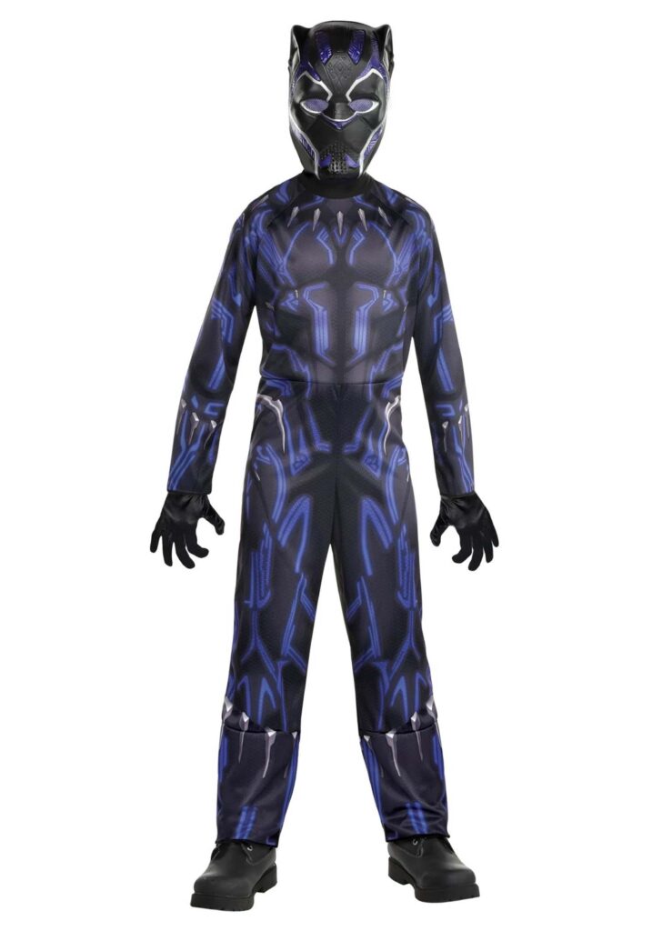 This officially licensed Marvel costume recreates the Black Panther’s legendary armor with intricate printed details covering the jumpsuit. The design includes built-in muscle shading to give your little hero a battle-ready look, plus a printed claw necklace on the chest, because no Black Panther suit is complete without it. Adding to the high-tech feel, blue accents run throughout the suit, mimicking the vibranium energy that absorbs and redirects momentum (sadly, this version won’t let them bounce off walls, but maybe that’s a good thing).The set also includes a molded plastic Black Panther mask, designed with mesh-covered eye openings so they can see clearly while on their next mission. An elastic band keeps the mask secure, so there’s no need to worry about it slipping during intense superhero action poses. Easy to wear, easy to move in, and packed with Wakandan flair, this suit is ready for action.Suit Up Your Superhero.