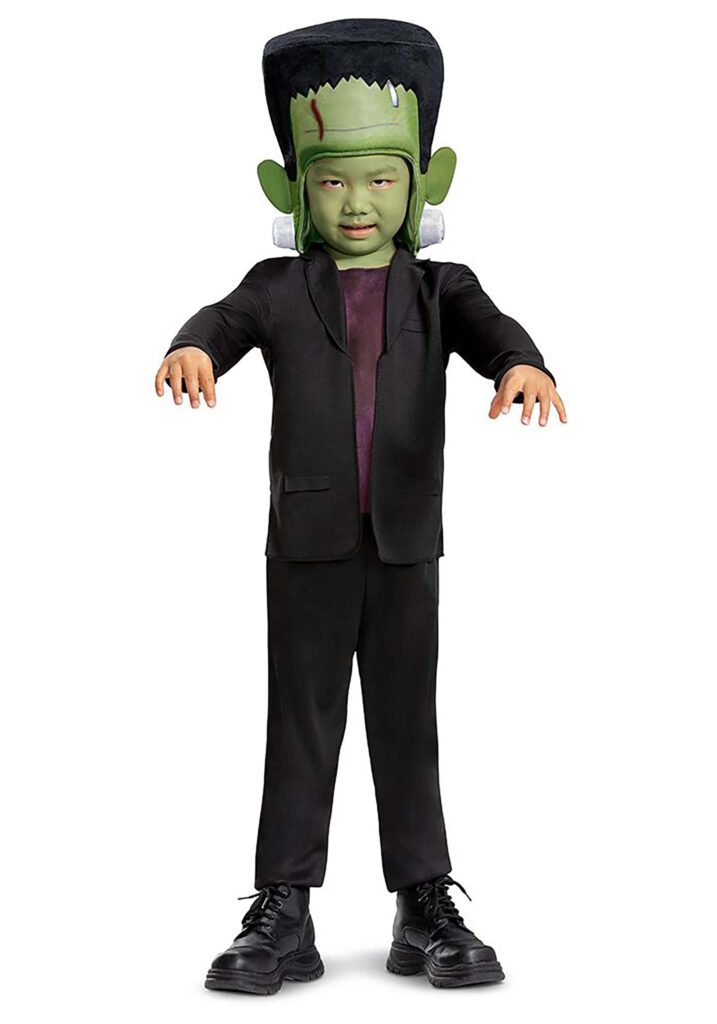 Don’t let your little one know how completely adorable he looks in this Monsters Infant/Toddler Frankenstein Costume for Boys! The so-spooky-it’s-adorable outfit is a jumpsuit designed to look like a black jacket with long sleeves, lapels, and an attached purple shirt front, plus an attached pair of comfy black pants. The green headpiece really sells the monstrous appearance; it has a tall forehead with faux black hair, fake ears, and silver-tone neck bolts. All that’s left to do is find a pair of big boots and practice a shuffling walk! Monster Mania Call off the pitchforks and torches: This monster is friendly! All it wants to do is join in the Halloween fun, and once the neighbors get a good look at it, they’ll be only too happy to oblige. This monster will be perfect at adding some spookiness to a school or Halloween event, even though its personality is as sweet as the candy bars it’ll get while trick-or-treating. It might try to tell you that it’s nocturnal and doesn’t need to go to bed, but don’t listen to it: little monsters need their sleep just like the rest of us.
