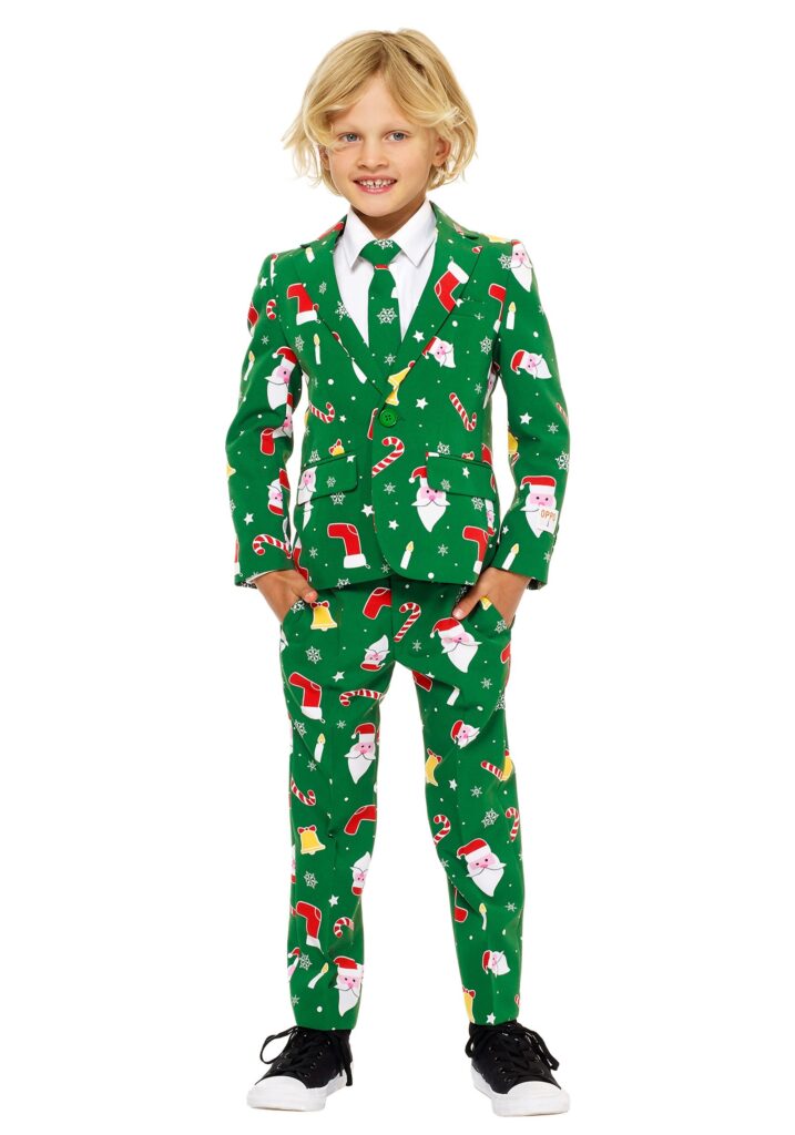 Christmas pajamas aren’t for everyone. Although always festive and stinkin’ cute, a candy cane print thermal onesie might not be the best outfit for your son to sport on Christmas Eve. If Santa hats and overly-decorated ugly sweaters aren’t his cup of tea (they can be very itchy on sensitive skin), then he might feel more comfortable wearing a sophisticated ensemble; something that says, “I’m old enough to stay up late on Christmas Eve, but I’m still young enough to race down the steps for presents on Christmas morning.” Outfit your little guy in a holiday-print Opposuit and he’ll light up like the gold star on top of your tree.Not at all itchy or uncomfortable, this 3 piece suit comes with a jacket, pair of pants, and a necktie. Perfect for dapper little dudes, this ensemble all features the same festive print featuring a bell, stocking, candy cane, snowflakes, and the one and only Santa Claus. The suit jacket is fully lined and sports faux-pocket flaps and a fashionable single button. The pants fasten via a zipper and button/hook closure, while the matching tie easily clips onto any dress shirt. It’s perfect for self-sufficient boys who insist on dressing themselves. He’ll love wearing the Santa Boss suit to the mall to take a picture with Santa or to grandma’s house for some pumpkin pie-baking gingerbread house-making. We advise wearing an apron because you don’t want to get icing on this snazzy yuletide suit.