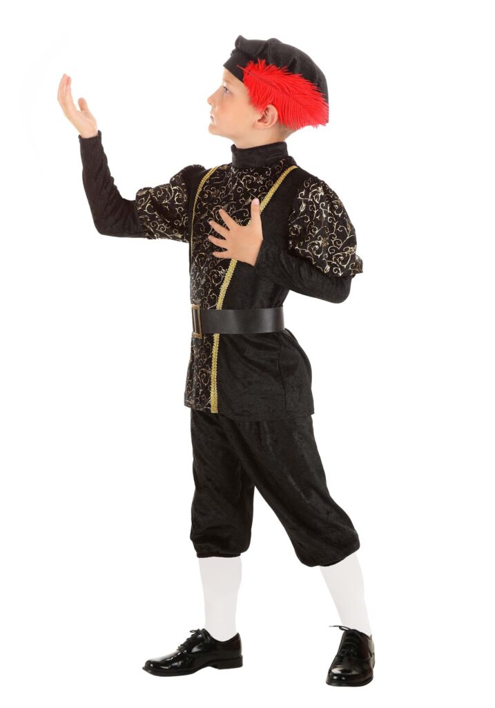 Defy fate and channel one of history’s most famous characters when you wear this exclusive Star-Crossed Romeo Costume for Boys! The velour top fastens behind its mock-turtleneck collar and is decorated with an inset panel and puffed sleeves that are printed with a pattern of metallic gold swirls. A black faux leather belt fastens around your waist and features a gold-tone buckle. The velour pants are cropped below your knees and have elastic in each cuff. Your crowning touch is the Tudor-style cap bedecked with a bright red feather. Wherefore Art Thou? We can only imagine that the Bard himself would thoroughly approve of a costume like this one. It’s perfect both for Halloween fun and for taking the stage as one of Shakespeare’s best-loved heroes. Maybe your director will even let you use real swords for your duel with Tybalt, but if not, don’t worry. There’s still lots more fun to be had. Daggers and poison tend to make stories pretty exciting.