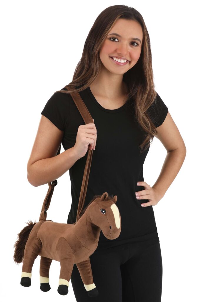 Design & DetailsYou won’t need to worry about tying the correct knots or getting tangled in your own rope to keep this Horse Costume Companion by your side! Whether you’re dressing up as a cowboy, a jockey, or a horse yourself, you’ll love having this adorable accessory along for the ride. This soft plush companion is designed in the shape of a horse, complete with a fluffy mane and tail. It features a small zippered pocket in the top and an adjustable strap for comfortable carrying!