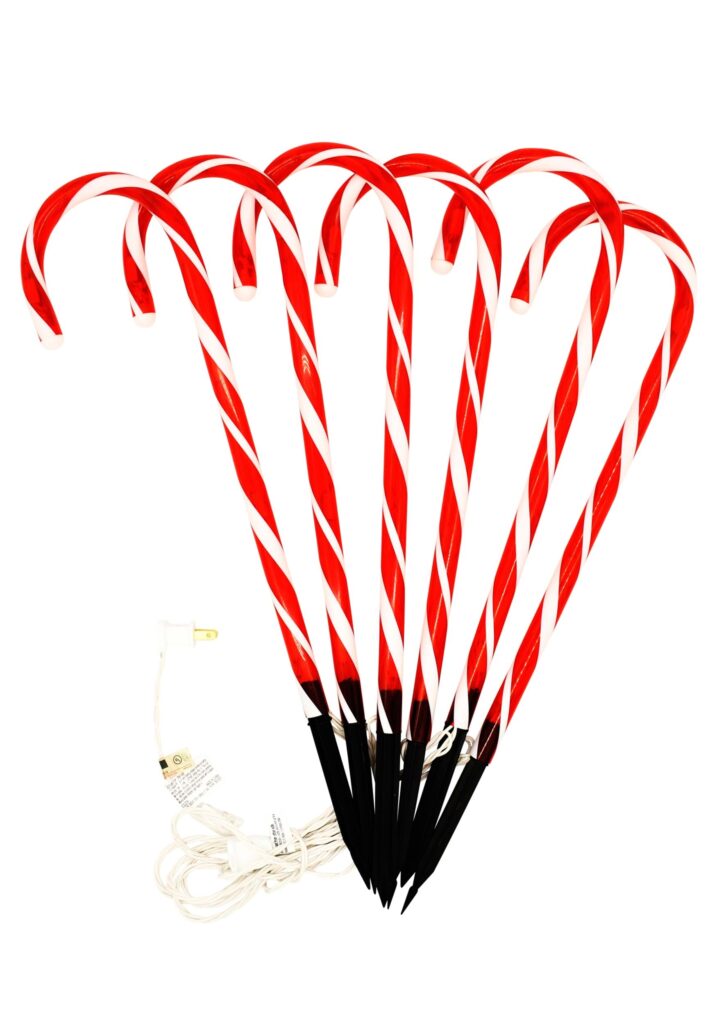 Welcome to the North PoleSanta’s home base must be a magical place! We imagine rows and rows of beautifully decorated toy factories, toboggan-shaped street cars, shimmering skating rinks, and Christmas trees galore. Since it’s an enchanted spot, some of the street markers must be edible, right? Make your home look like St. Nicholas’s with this adorable 17″ Candy Cane Pathway Marker Light String! The six red-and-white-striped lights are shaped like candy canes and can be staked into the ground thanks to the stakes that come with them. When you plug them in via the attached cord, they look good enough to eat!