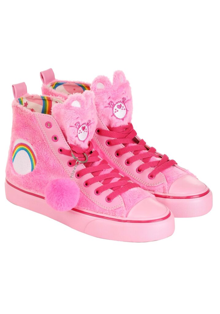 Pep in Your StepOk, so maybe you didn’t make the varsity cheer squad in high school. But we know you won’t let that stop you from spreading cheer! Your optimistic attitude and bright outlook on life make you a naturally encouraging person. Does all that sound like it describes you? If so, that’s amazing! However, if you find that a peppy perspective isn’t in your default settings, there’s nothing wrong with having something to help it along, like this fabulous footwear!Fun DetailsThese charming Cheer Bear Shoes are made exclusively by us to bring a little extra brightness to your day! They’re covered with a soft pink faux fur and have Cheer Bear’s rainbow belly badge on the sides. The tongues of these shoes have been replaced with Cheer Bear’s smiling face, and they even come with a fluffy pink keychain that you can wear however you like! We think you’ll find it easy to be a little extra cheerful when you’re wearing these bright shoes!