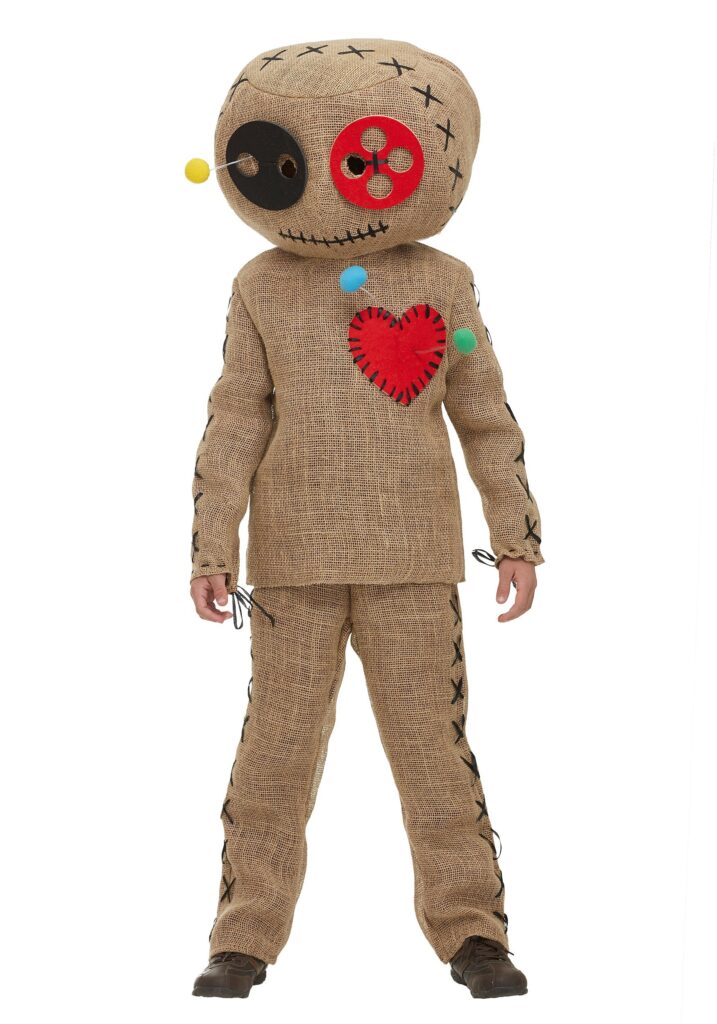 We know that your boy or girl is super sweet. Like, everyday! But what if they could embrace the darker side for just one night? When they go in this Voodoo Doll costume for kids, they won’t even have to be the ones causing pain. Because it’s going to be up to the witch doctor to choose just who’s getting poked and prodded! Styled as a burlap 3 piece suit, the shirt, pants, and over-sized full head mask, this costume will transform any guy or gal into the twisted toy of a Voodoo witch doctor. The heavy woven burlap fabric is lined with tricot fabric, so they’re not going to get too itchy in this style. With signature stitched details, and attached foam pins, we’re going to feel very sorry for the poor soul who gets attached to your child. But we have no apprehension about how much fun your little kiddo is going to have! They’ll have a good time, and of course, no one’s going to be sticking your child with pins and needles. But if you choose to go as a voodoo practitioner, we’re sure that it would make for quite the creative parent and child costume combination! Pick up this signature costume for a unique Halloween twist.