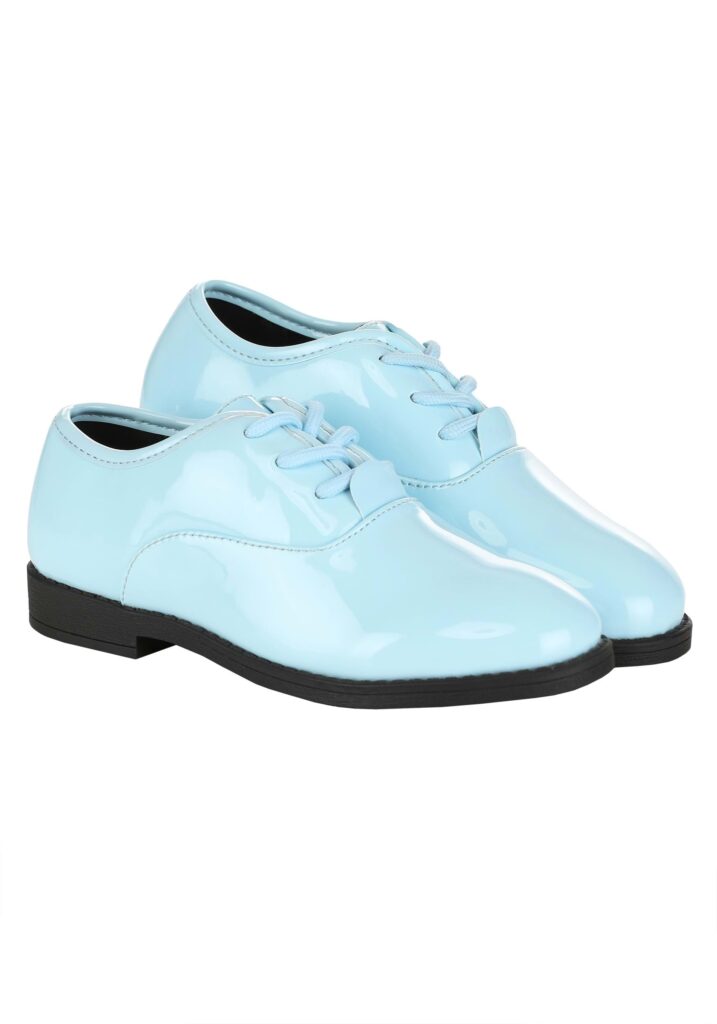 Faux patent leather uppers make these powder blue shoes look high-end without the high maintenance. The rubber soles ensure durability and traction, perfect for running around at parties or just a busy day of play. Lace-up design with narrow, rounded toes keeps the look sleek while ensuring a snug fit. No more worrying about tripping over untied laces! Inside, lightly padded inner soles add comfort, while the textured anti-slip outer soles are just what you need for peace of mind, knowing your kid won’t be slipping and sliding on the dance floor. These shoes are designed to keep up with the most energetic kids while still looking pristine! Perfect for Every Occasion.