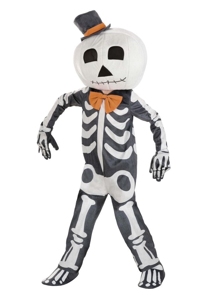 If your kiddo wants to be a spooky, scary skeleton for Halloween, our exclusive Kid’s Vintage Skeleton Costume has their back. Combining retro styling and thoughtful design with a jumpsuit, mask, gloves, and foot covers, this costume is one both kids and parents will love! The long-sleeve jumpsuit is made from cozy and durable 100% polyester Minky materials and cut for a looser fit. A zipper down the center back ensures quick dressing, while the printed skeleton pattern makes turning into the Halloween character easy! Included and attached accessories help polish the look, starting with an oversized linen bowtie secured to the jumpsuit collar. Gloves printed to match the jumpsuit wear comfortably snug with elastic wristbands and the coordinating shoe covers hold secure with elastic ankles and elastic bands that loop under preferred footwear.The full-coverage mask, meanwhile, completes the look! Foam-backed and oversized, it has a bobblehead charm that keeps its shape over multiple wears. Its printed details and attached hat help ensure this skeleton style is more spooky than scary! Champion Halloween.