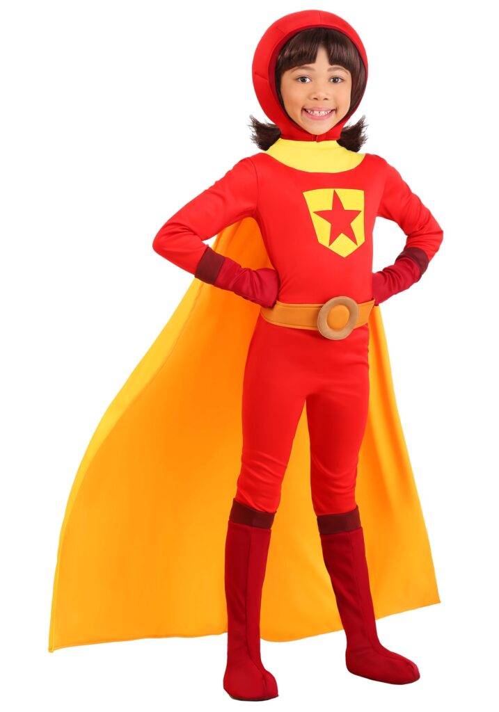 Design & DetailsThis costume is ready for superhero action. Fully licensed, your little one will feel like a hero that’s straight from her favorite PBS show. The costume features a red jumpsuit with bright accents and attached boot covers that loop over your kiddo’s shoes.A yellow cape is attached to the shoulders of the suit while the red headpiece secures under the chin with a hook and loop strip. The costume is cinched in the middle with a soft material that’s sewn to look like the one on TV. Topped off with a pair of gloves and a big vocabulary, this Word Girl costume is sure to make your kiddo smile this Halloween. Monkeying AroundAre you ready to see your little one jump into a new, heroic persona? While you might not want to adopt a monkey for a captain sidekick, you can always dress up your youngest as a monkey to make this dynamic duo complete!