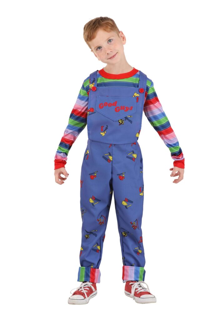 Whether you’ve let your tyke watch the horror movies or not, this Kid’s Child Play Chucky costume is sure to be a delight for all. This jumpsuit costume is an easy-to-wear and recognizable recreation of the Good Guy Doll from the iconic film series. The one-piece outfit features an all-over print and faux overalls. Hook and loop patches on the back fasten the costume in place and exaggerated cuffs finish off the unique look!
