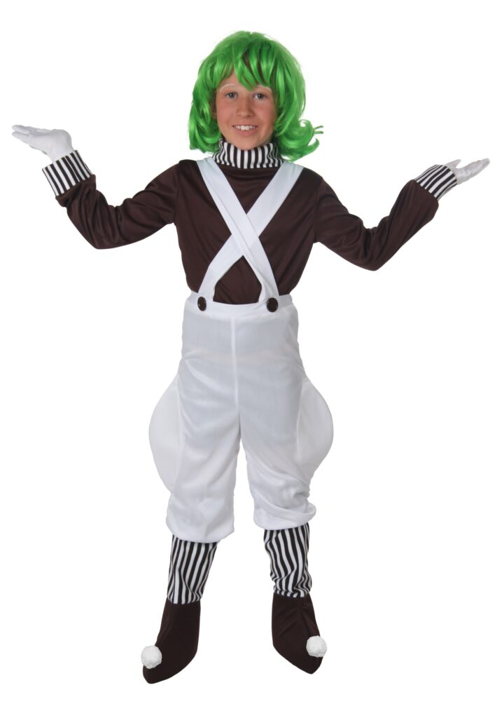 Who wouldn’t want to make candy and yummy goodies for one of the coolest guys around – the world-renowned candy warehouse owner! This Kids Chocolate Factory Worker Costume will turn you into a jolly orange worker with the best job in town. One of the perks is you get to sample all the delicious treats! Generations young and old can appreciate this iconic costume €“ making it a perfect choice for all of your Halloween adventures.Make your dreams of chocolate rivers and life-size gummy bears come to life when you dress in this kids chocolate factory worker costume. Working with the candy man himself has never been so easy as when you dress your kids and your family in these authentic candy creator costumes. We have adult and toddler costumes as well, so you can start your own candy factory! Whether you want to learn how to make your own candy or are just looking for a fun and entertaining Halloween costumes for your kids, this affordable and high-quality costume is a great choice. We also have all of the accessories you need to take the costume to the next level €“ including face makeup, gloves, and more!This chocolate factory worker costume is made of 100% polyester interlock knit fabric and comes with a brown pullover shirt that has striped cuffs and a mock-turtle neck. The white knickers have attached suspenders and brown buttons. These knickers are complemented by the brown and white boot covers. Top it all off with a green synthetic wig and you’ll be ready for a walk through the candy-filled factory just like the rest of the candy factory workers!