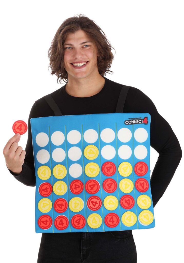 Why is Connect 4 such a great game? It’s easy. No crazy rulebook to memorize. No complicated pieces. No rolling dice. Just drop your first piece into the slot… and you’ve begun the game. It’s a game anyone can play! Your 8-year-old cousin can pick it up in seconds and so can your 88-year-old grandma! The delightful simplicity of the game inspired this awesome Connect 4 Sandwich Board Costume, quickly transforming any board game fan into the fun and simple game from Hasbro!