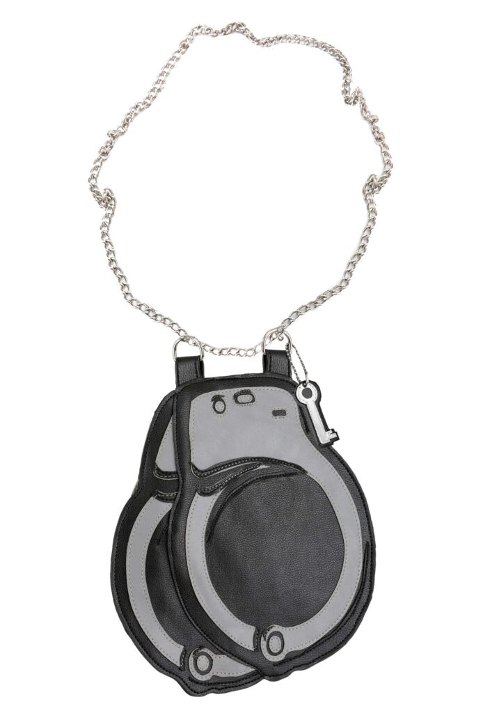 You have the right to remain stylish when you accessorize with this exclusive Police Handcuffs Purse! The fabric purse is shaped and printed to look like a pair of handcuffs. A zippered inner closure keeps your IDs, money, and other essentials secure. The sliver-tone wrist strap is decorated with a cutout key charm. Put Your Hands Behind Your Back! Show you mean business this year by pairing your cop costume with this adorable purse! Even if you can’t actually cuff anyone with it, it’s still one piece of equipment you won’t want to go on beat without.