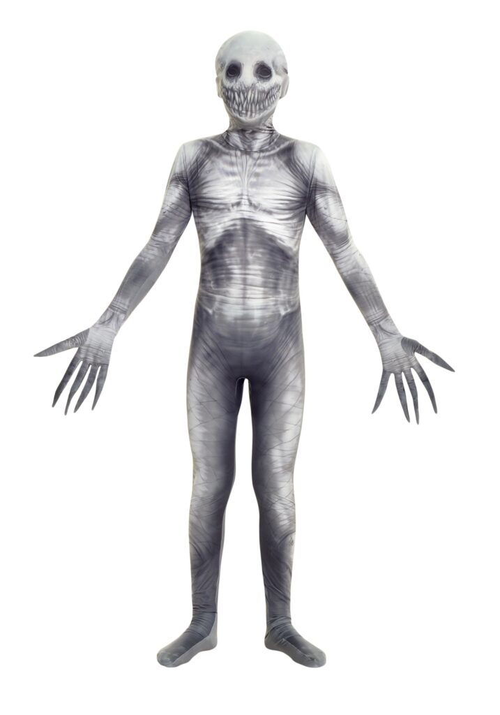 When you think of monsters do you think about Frankenstein’s creation? Maybe you think of werewolves or one of the many horror movie creations made in the past thirty years. Here’s the thing, the monsters people are talking about these days aren’t created by authors or by movie studios, they’re created by people talking on the internet.If your kid wants to morph into a modern terror this Morphsuit is sure to put them in the Halloween spirit. This monster’s backstory is clouded in enough mystery and intrigue that people argue over whether or not it might actually exist. It’s time to bring the modern era to trick-or-treating in super spooky fashion. This suit fits close to the skin with the fabric printed to look like the colorless figure so it looks like your child actually has become the rake. Your kid will have a great time slouching creepily on the stairs and posing with the long fingers for pictures that look like horror movie stills. Time to keep the legend alive.