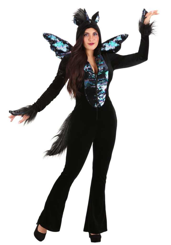 Crafted from a blend of 92% polyester and 8% spandex stretch velvet, and 100% polyester jersey knit, sequin knit, and faux fur, this costume offers both comfort and style. The stretch velvet jumpsuit features a front zipper for ease in putting it on and taking it off, and includes sequin knit bodice insets, horn, wing coverings, and ear linings for an extra touch of mystique.The wings are sewn onto the back of the black jumpsuit with wire in the outer edges, allowing you to bend and shape them as desired. Meanwhile, a stuffed faux fur tail sewn to the back of the jumpsuit provides added detail and glamour.The top of the pegasus hood features soft sculpted ears, a stuffed horn, and a faux fur mane, adding to the mysterious and mythical ambiance of the costume. Foam-backed sequin knit mitts with elastic palm bands and faux fur edging complete the ensemble, making you feel as though you have fully transformed into a Pegasus.Living the Pegasus Life.