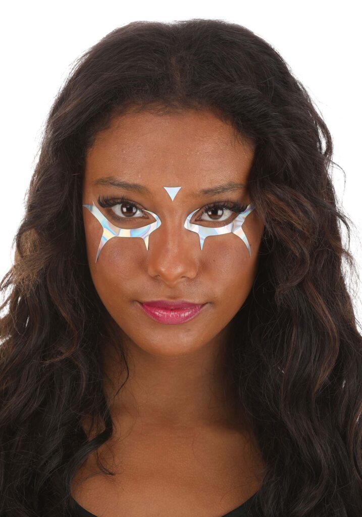Super Shiny Every superhero has a signature look. Most of the looks involve spandex, but some are more about cool hairdos or accessories. If you ever suddenly gain otherworldly powers, why not make your signature style center around face decals that will make your eyes pop? You’re sure to stand out from the pack!