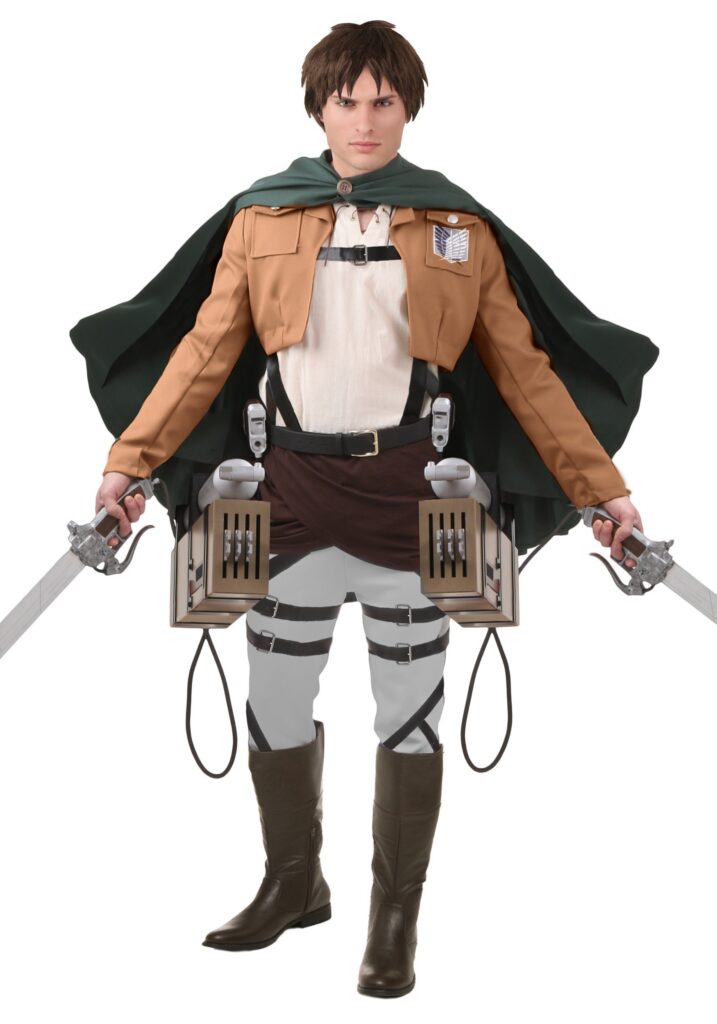 It takes some serious guts to join the Survey Corps and fight back against the Titan threat before they are able to completely wipe out humanity! Not only are they tasked with exploring the world outside the safety of their walls so mankind might live and thrive there again one day, but their experience working around and dealing with Titans puts them in the unique position to study them. Eren Jeager’s wild temper and impulsive nature may seem like he would be a terrible fit for this elite group, where discipline is essential in the face of giant people-eating monsters. But his passion and devotion to his friends actually make him exactly who you’d want fighting by your side. His deadly combat skills and ability to turn into a Titan definitely come in handy too when things get really bad! When it’s time to head out on a dangerous expedition, you’re going to need to be dressed properly if you expect to come back. This exclusive Deluxe Attack on Titan Eren Jaeger Costume lets you assume the role of the Hajime Isayama character and take the fight to the Titans beyond the wall! The shirt and pants look just like the Survey Corps standard issue uniforms. The jacket and green hooded cape are embroidered with the “Wings of Freedom” insignia to indicate the elite unit you belong to and the included belt and harness are ready to mount your Vertical Maneuvering Equipment onto. This costume probably won’t make you able to shift into a Titan, but it will definitely make you look like a tough and dedicated Titan fighter, which may give you just the edge you need!