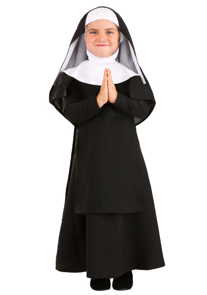 Product DetailsThis dress has all the stylings of an authentic habit, including a jersey collar and a balaclava-style head cap that leaves the face exposed. The veil features a foam edge for comfort and fastens with ties at the back of the neck. This completely exclusive garment is as heavenly to wear as it is to look at, which is really helpful. We all know how hard it is to get a toddler to wear something that’s not comfortable. You don’t know? Oh, well, trust us. It’s hard.Back in the HabitJust make sure you’re ready to be on your best behavior once your kiddo has this nun costume, she’ll be on the lookout! We’re not saying you have to be a saint or anything, but your little dear won’t stand for any selfishness or rowdiness. Good luck!
