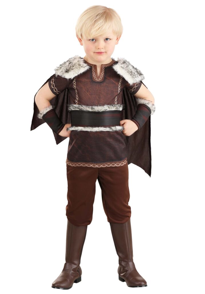 Product DetailsVictory is sure to be yours when you wear this exclusive Toddler Victorious Viking Costume for Boys! The outfit includes a short-sleeved pullover tunic made of brown polyester jersey knit. The V-shaped placket, sleeves, hemline and chest are decorated with printed and stitched braid details. A foam-backed belt secures around your waist and is trimmed with faux fur to match the brown cape with its faux fur collar. Faux fur also edges the foam-backed wrist cuffs (the North Sea can get chilly). The brown jersey knit pants have an elastic waistband for a comfortable fit. No Pillaging NecessaryWhat would the legendary Norse raiders think of the custom of Halloween? “Wait… so people just give us candy? We don’t have to raid it? What if we threaten them just a little bit?” Enjoy trick-or-treating with the rest of your warrior band or wear this costume for any dress-up event you like. It’s also a fun choice for imaginative play! Hopefully your stuffed animals don’t mind always being the pillage target. Maybe later they can help you discover North America.