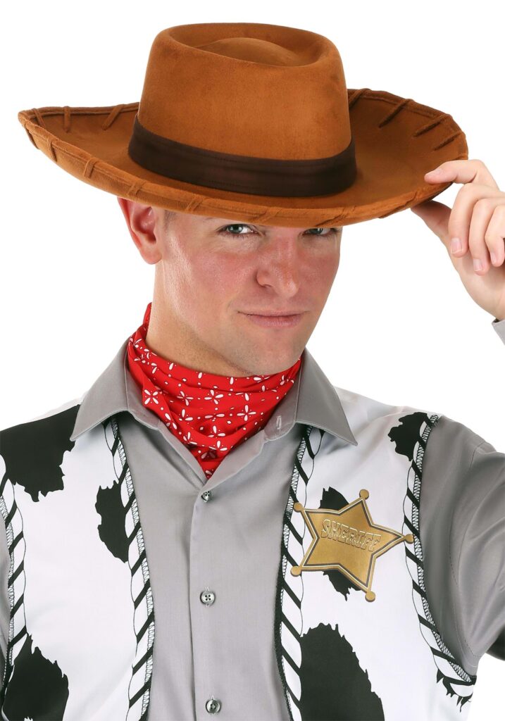 Sheriff Woody Pride is one of the most lovable characters in the history of Pixar, and for good reason – he’s loyal, hilarious, and he’s got enough guts to go the extra mile for the people he loves. After all you don’t become the unofficial leader of your particular band of toys if you’re a schmoe, now do you?And now you can reach for the sky and become Toy Story’s lovable sheriff in this this Adult Deluxe Woody Cowboy Hat. A replica of Woody’s hat from Toy Story, it’s made of brown suede material, has a brown band around the crown, and even features rope decorations along the brim. Wear it solo or with one of our many Disney Pixar costumes! This great hat is also available in a kid size!