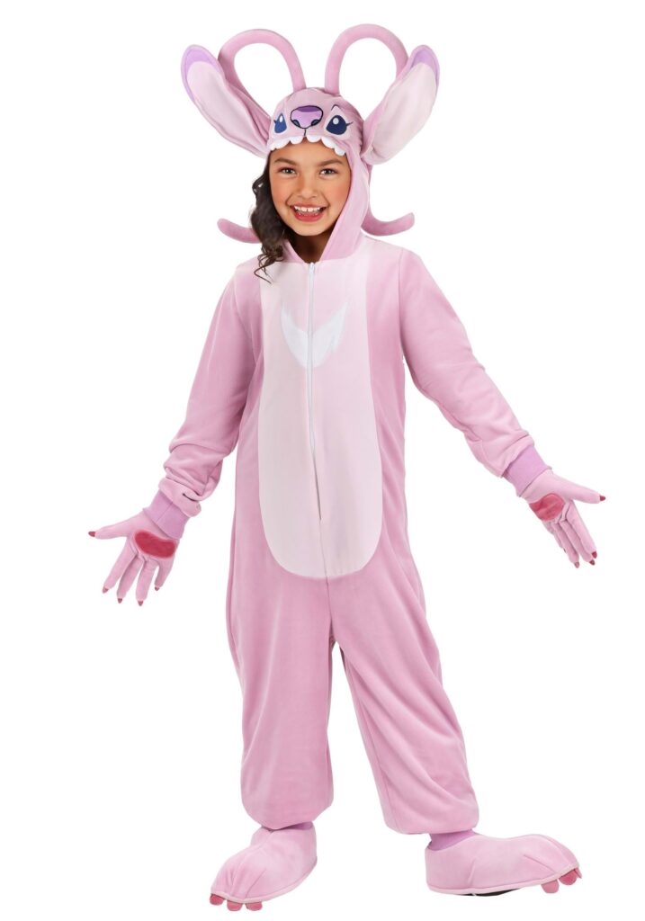 This officially licensed outfit is made of soft velour fabric for comfortable wear. It includes a jumpsuit with cozy rib-knit cuffs that zips down the front. The hood features Angel’s soft-sculpted face, complete with ears and antennae. A pair of gloves and shoe covers complete the costume to achieve a head-to-toe look.