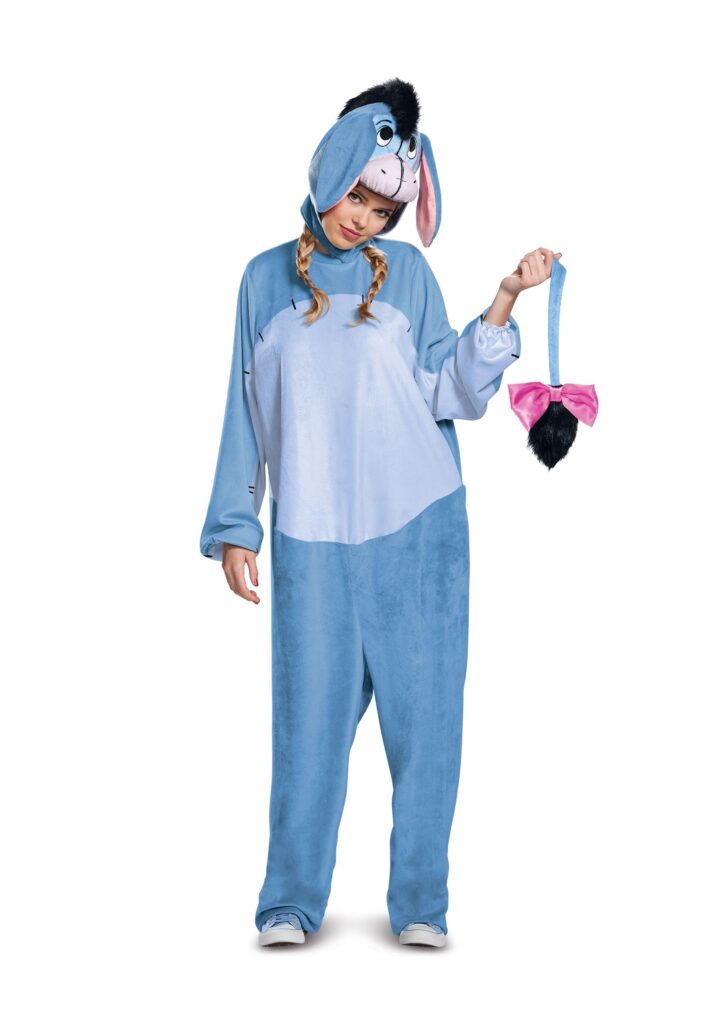 Have you ever had a bad day? Maybe you spilled your morning coffee on your brand new shirt, or maybe you got a flat tire on your way to work. Maybe your favorite TV show got cancelled, or you accidentally put on two different shoes that don’t match. Well, no worries, because Eeyore understands you.Eeyore has really had some of the worst days of all time. He once lost his tail and Rabbit used it as pull-string for his bell. His house has been destroyed more times than we count, by a bouncing Tigger, a fluttering butterfly and even just a tiny gust of wind. He can really share in your troubles and now, you can share your experience with him! This Eeyore deluxe adult costume helps you step into the role of the classic Winnie the Pooh character. The costume comes with a full-body jumpsuit with blue and gray colors to help you look like a story book donkey. It has elastic around the sleeves and it also has printed stitching. It comes with a detachable tail with a cute pink bow and of course, the finishing touch to the outfit is the character hood. The hood fits over your head with a chin strap and the top is shaped to look like Eeyore’s head. It even has a tiny tuft of black hair on top and a pair of floppy ears on each side. You can finally join Pooh Bear, Christopher Robin and his friends in Hundred Acre Wood.