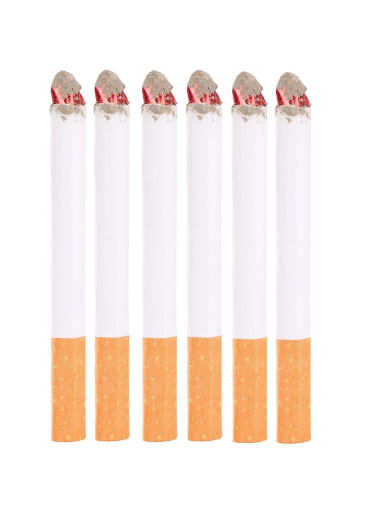 Design & DetailsSkip the smoke. But nail the edgy allure of a 1920s ensemble with our exclusive Faux Cigarettes Prop. These stylized accessories are modeled after the classic look of a lit filtered cigarette. However, their rolled paper construction includes none of the tobacco.To get the look of a burning cigarette, a glittery, flame-colored tip with imitation ash is attached at the end of each 3-inch prop. It even emits a fake puff of smoke as an added effect! Add the Made By Us costume accessory to your Gatsby, Mobster, or Flapper to perfect the 20’s aesthetic.Flameless FlourishNeed a final flourish for your 1920’s Halloween costume? Or maybe you’re looking for a subtle detail to enhance another rebellious ensemble. Either way, our Faux Cigarette Prop 6-Pack is a must! Designed to resemble real cigarettes but lacking tobacco and fire, these costume accessories are convincing and safe for any age!
