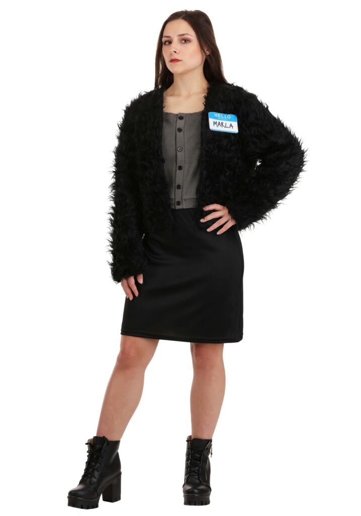 This look is pure Marla. Messy, mysterious, and weirdly fashionable despite looking like she threw her outfit together in a hurry. The black slip dress is effortlessly cool, perfect for nights spent lurking in dimly lit diners or saying things that make people question their entire existence. The button-up vest sweater adds just the right amount of 90s edge.The jacket is faux fur, dramatic, and the kind of thing that lets the world know that you’re a risk-taker who makes her own rules. It’s the final piece that pulls the whole “chaotic queen” aesthetic together. Just add some smudged eyeliner and an air of mild indifference, and you’re golden.The Best Bad Idea You’ll Ever Have.