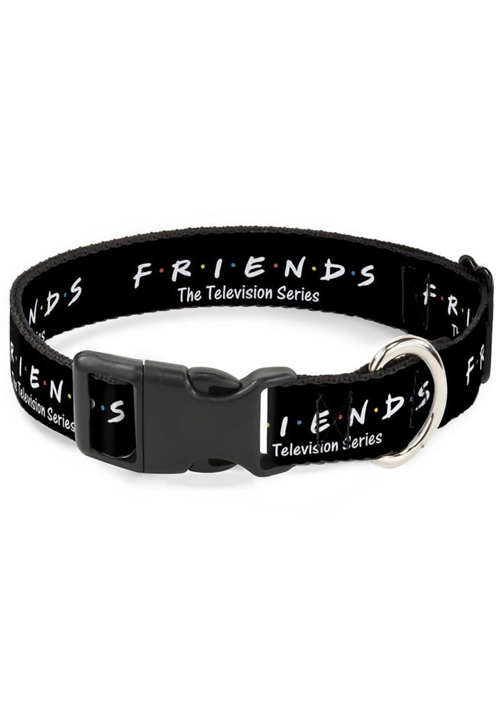 Product DetailsShow your pet that they’re your lobster with this officially licensed Friends Series Plastic Clip Pet Collar! The sturdy material depicts the famous Friends TV series’ logo against a black background. It fastens easily thanks to its durable plastic clip, and the attached metal ring is perfect for fastening a collar, name tag, or both. The One with the Fur Baby Take your furry friend and head down to Central Perk to meet up with the gang! We’re sure that Gunther will allow pets inside.