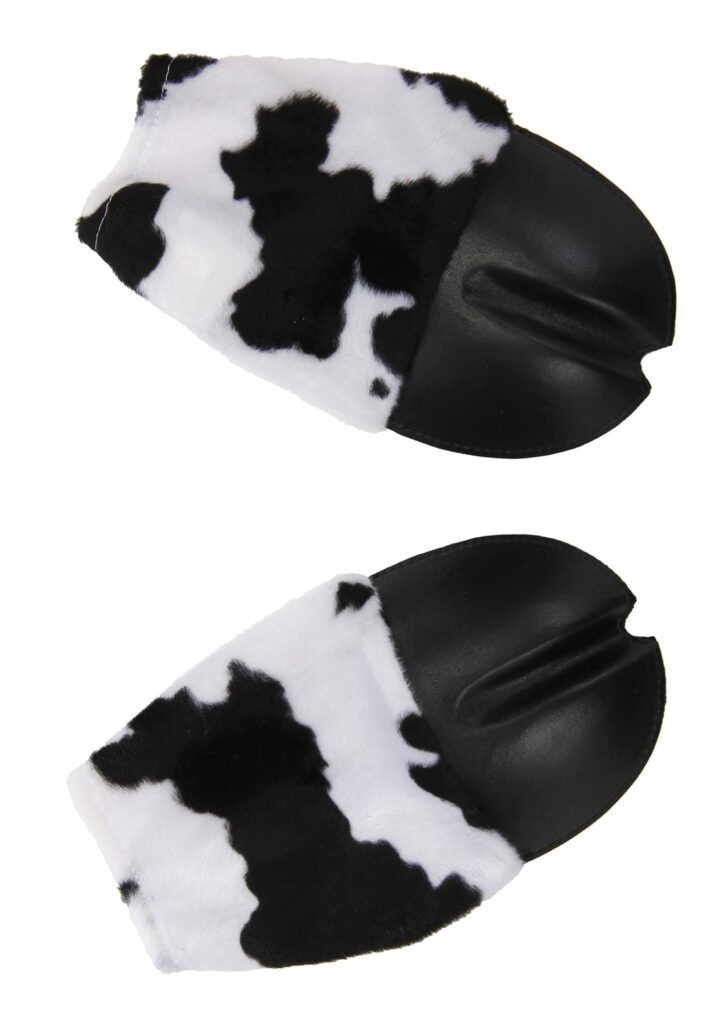 Imagine this: You wake up early on your farm. You shuffle downstairs to make coffee. You wait for it to brew, and then stroll out amidst the morning dew and birdsong to the barn with a mug to look over the animals. And there she is, your prize heifer…having her morning coffee. She’s sitting on a milk crate, just taking in the morning light, chatting with a friend as she sips from her mug, which she’s holding with…hands.Wait a minute! That’s not the image you imagined! You can’t have a cow with hands! No way; it ruins the pastoral vibe. That’s why you need these Cow Costume Front Hooves Gloves. Whether you plan on dressing like a cow for Halloween, or your cows on the farm somehow have human hands (no judgment), this pair will perfect your bovine image!
